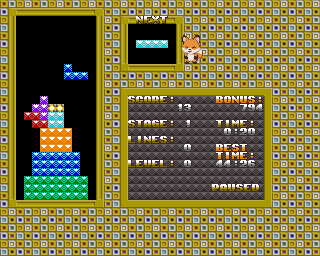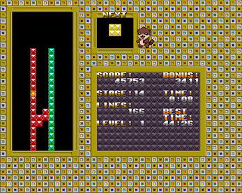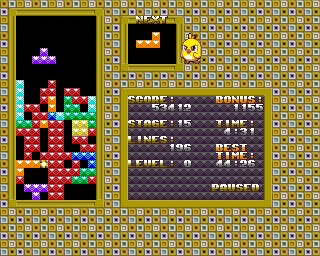 This interesting variation of Tetris focus on destroy the glow points present in the stage using tetris dynamic so to proceed to the next level, emphasizing to do this in the shortest time possible.